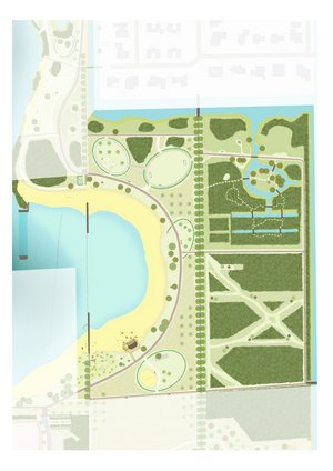 Deze zone vormt de noordelijke entree van het park. Veel mensen komen hier binnen via de woonwijk of vanaf het fietspad. In deze zone staat natuurbeleving centraal: het is een rustige, groene zone om doorheen te wandelen of fietsen.