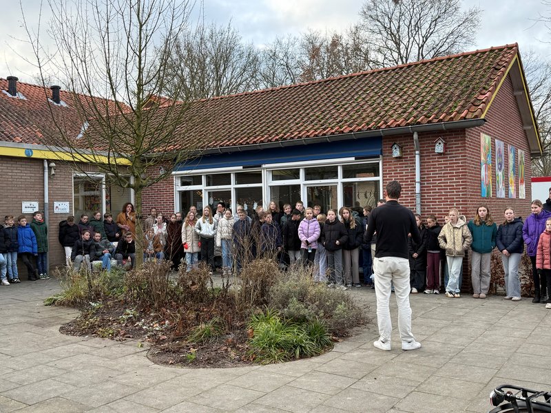 Onlangs vond de openingshandeling van De Oostermaat plaats op het schoolplein van de Prinses Ireneschool. Wethouder Alwin te Rietstap hield daar een korte toespraak voor de leerlingen van groep 7 en 8 van de Prinses Ireneschool en de Akker. Ook waren de projectteams van de gemeente en aannemer Schagen aanwezig. Alwin vertelde hoe we De Oostermaat veiliger hebben gemaakt voor alle soorten verkeer.